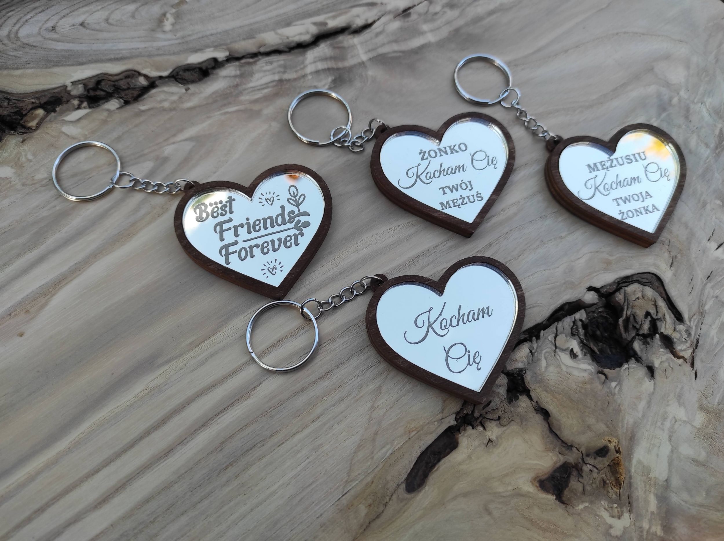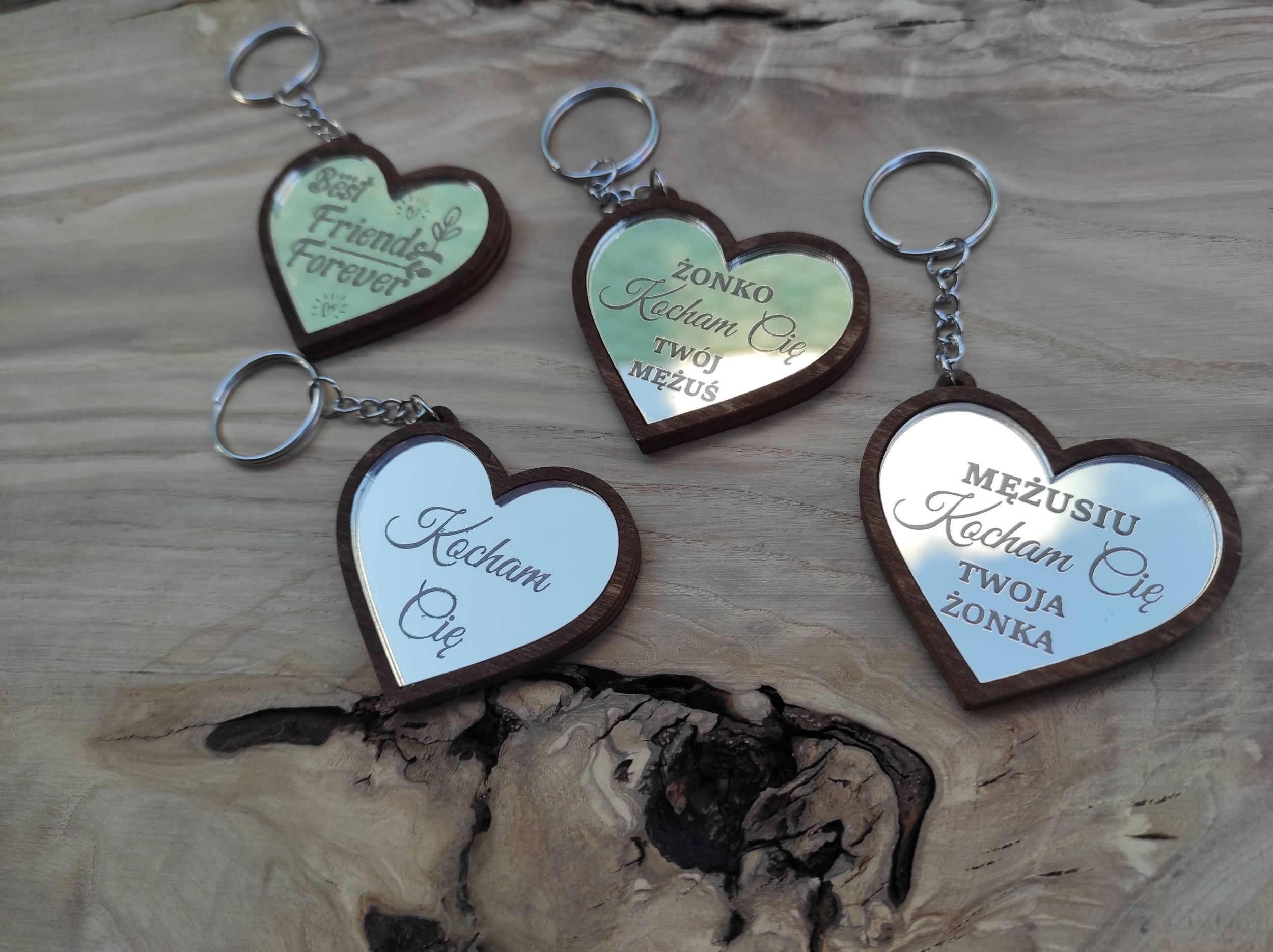 Brelok w kształcie serce z osadzoną lustrzaną pleksą na pewno zrobi wrażenie na obdarowanej osobie.