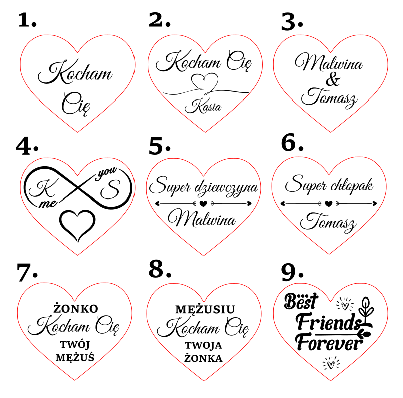 Przy zakupie prosimy o podanie imion przy wyborze wzoru -2/3/5 lub 6