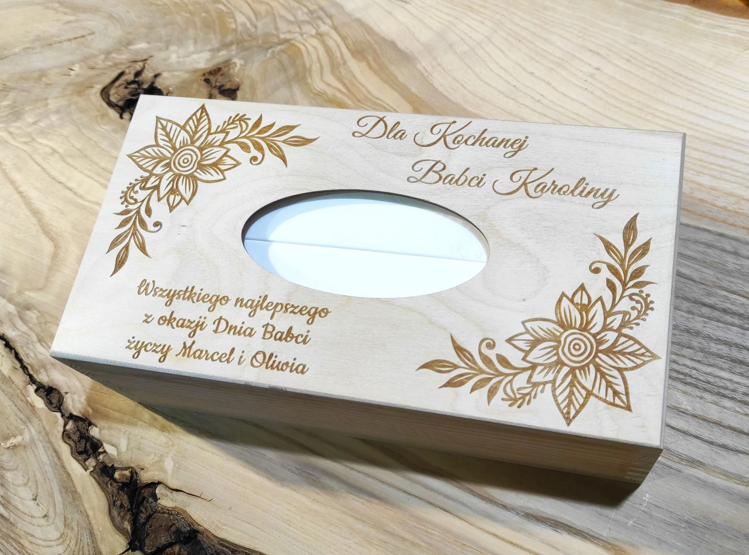 Drewniany chustecznik z grawerem – idealny prezent na Dzień Babci i Dziadka