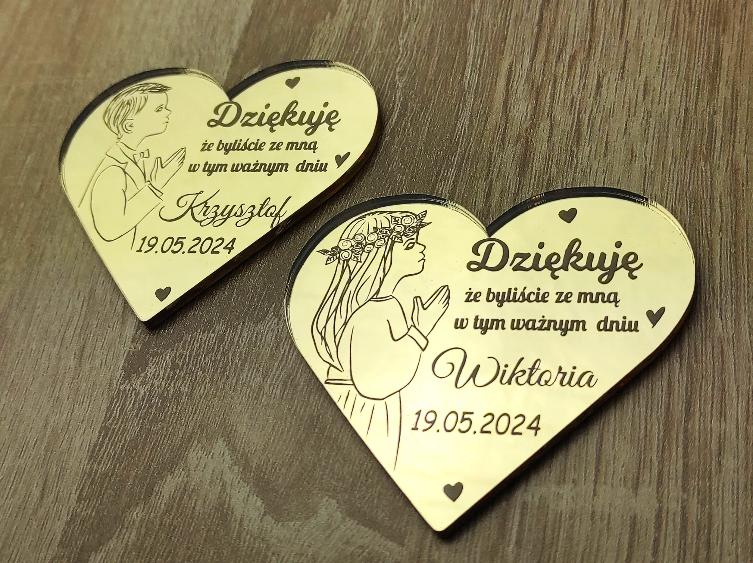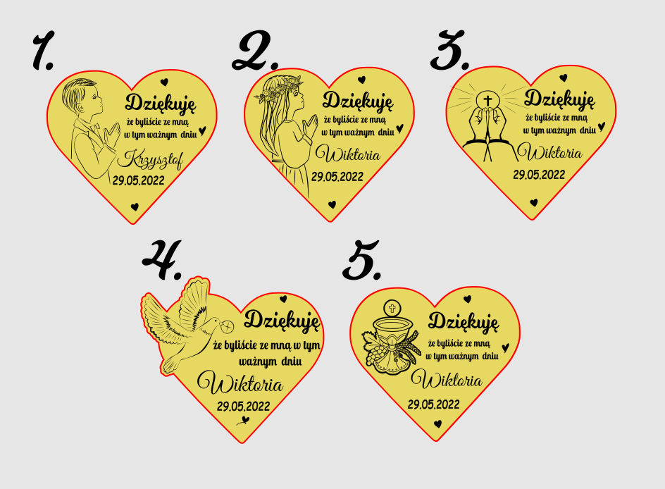 Podziękowanie Komunijne dla gości. Magnes w kształcie serca.