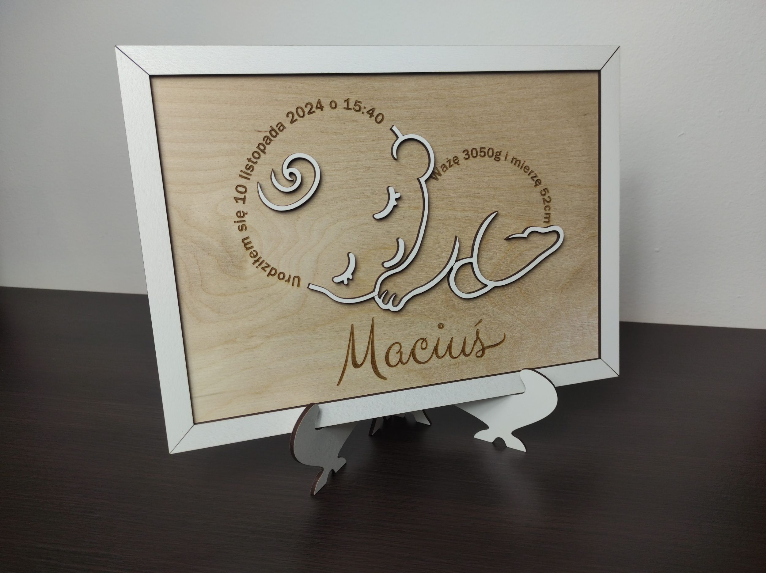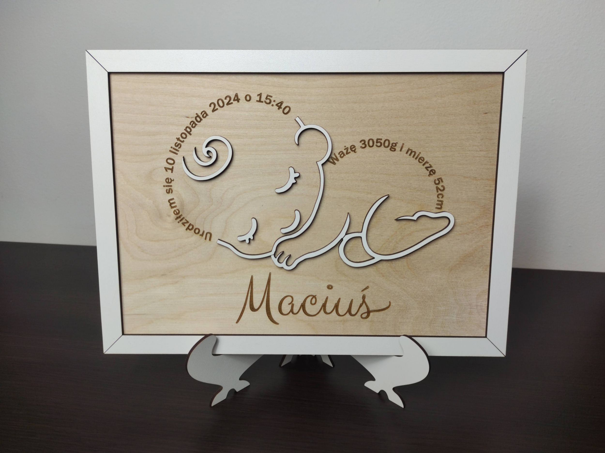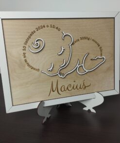 Nasz wycinany i grawerowany laserowo obrazek z metryczką dziecka to doskonały wybór!