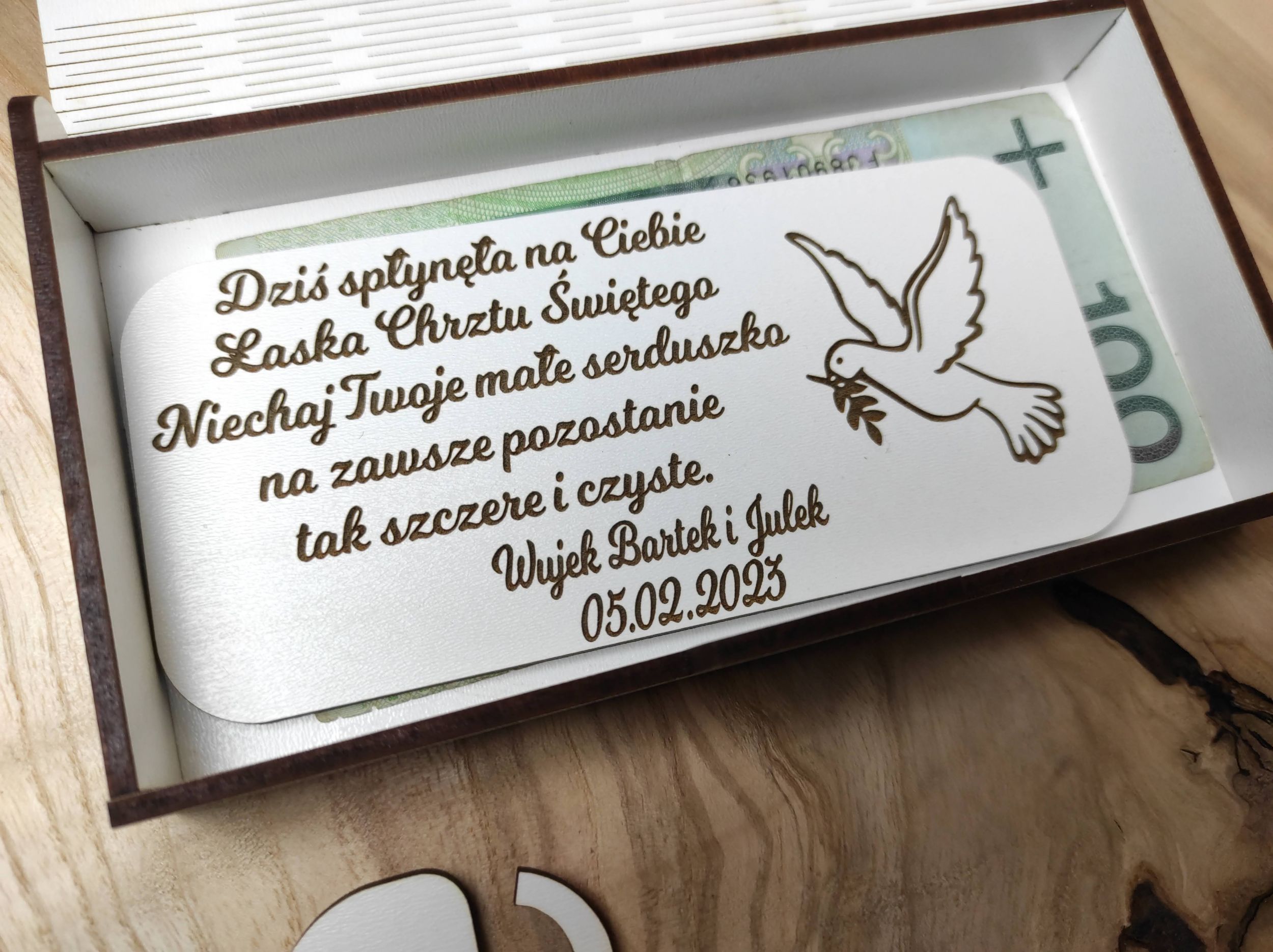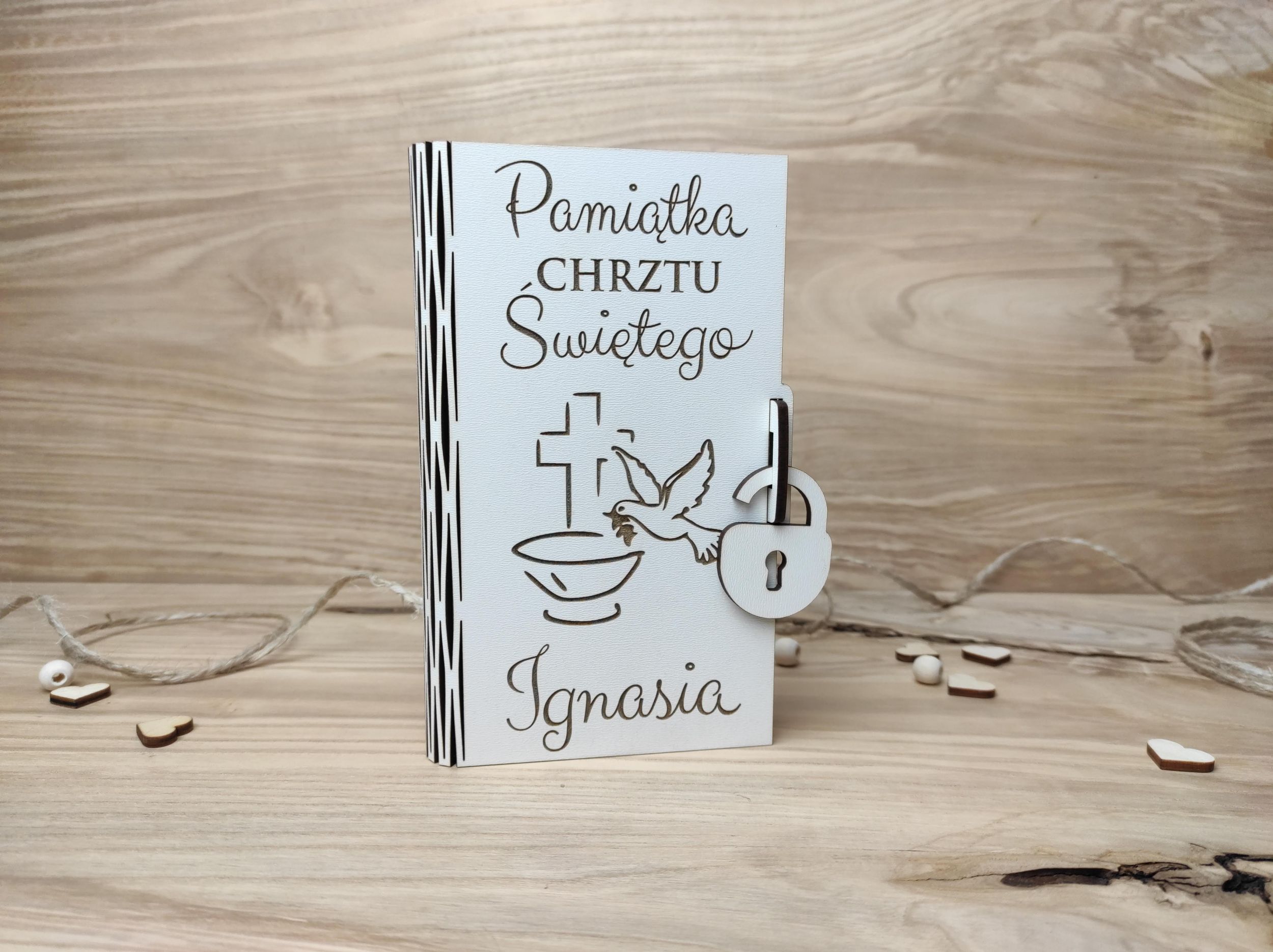 Pamiątka Chrztu w postaci pudełka na pieniądze.