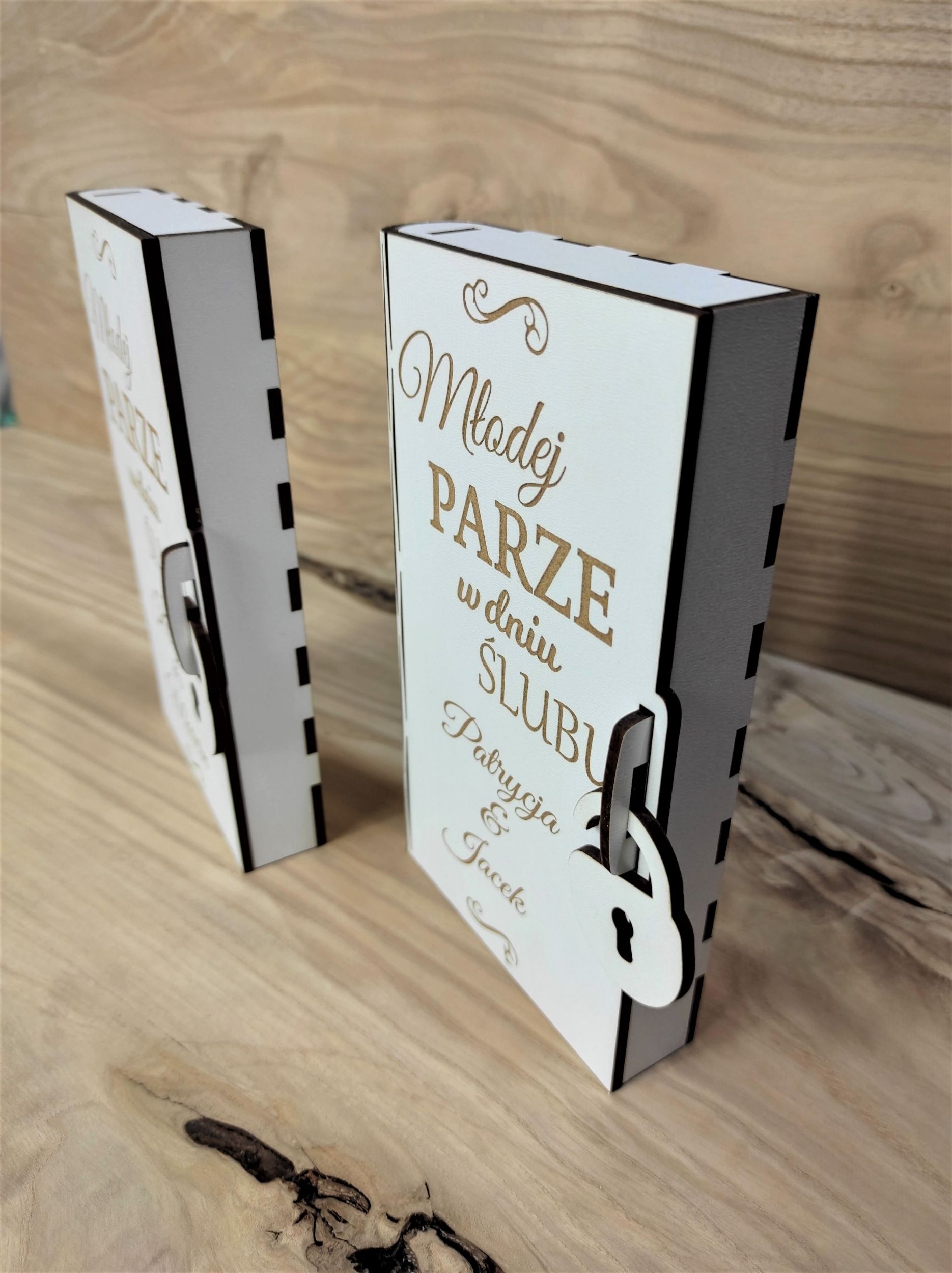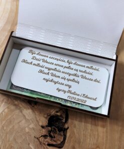 Pamiątka ślubna w postaci pudełka na pieniądze.