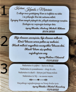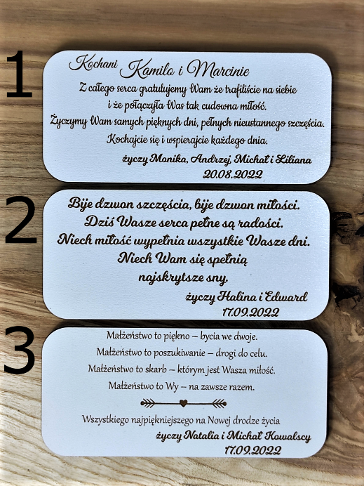 – oraz podpis tabliczki np. ( życzy Marta, Krzysiu i Kubuś , 22.05.2022 )