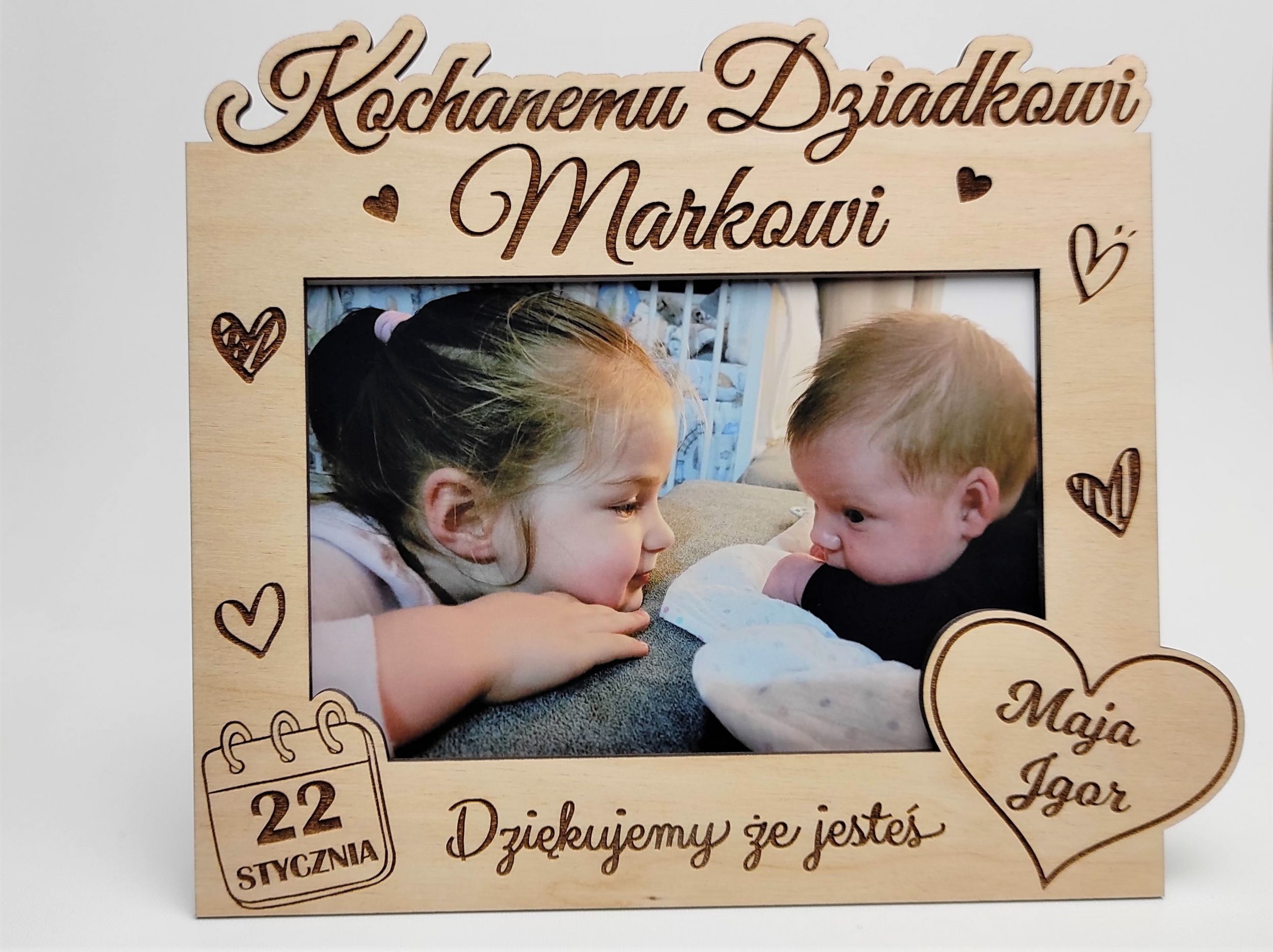Przykładowe zamówienie: Kochanemu Dziadkowi Edwardowi, serce: Halinka , Maciuś
