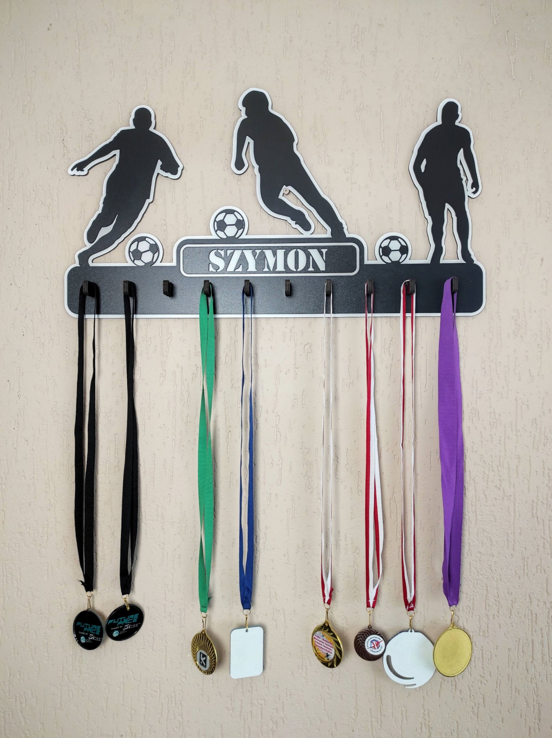 Personalizowany wieszak na medale PIŁKA NOŻNA pozwoli wyeksponować zdobyte medale.