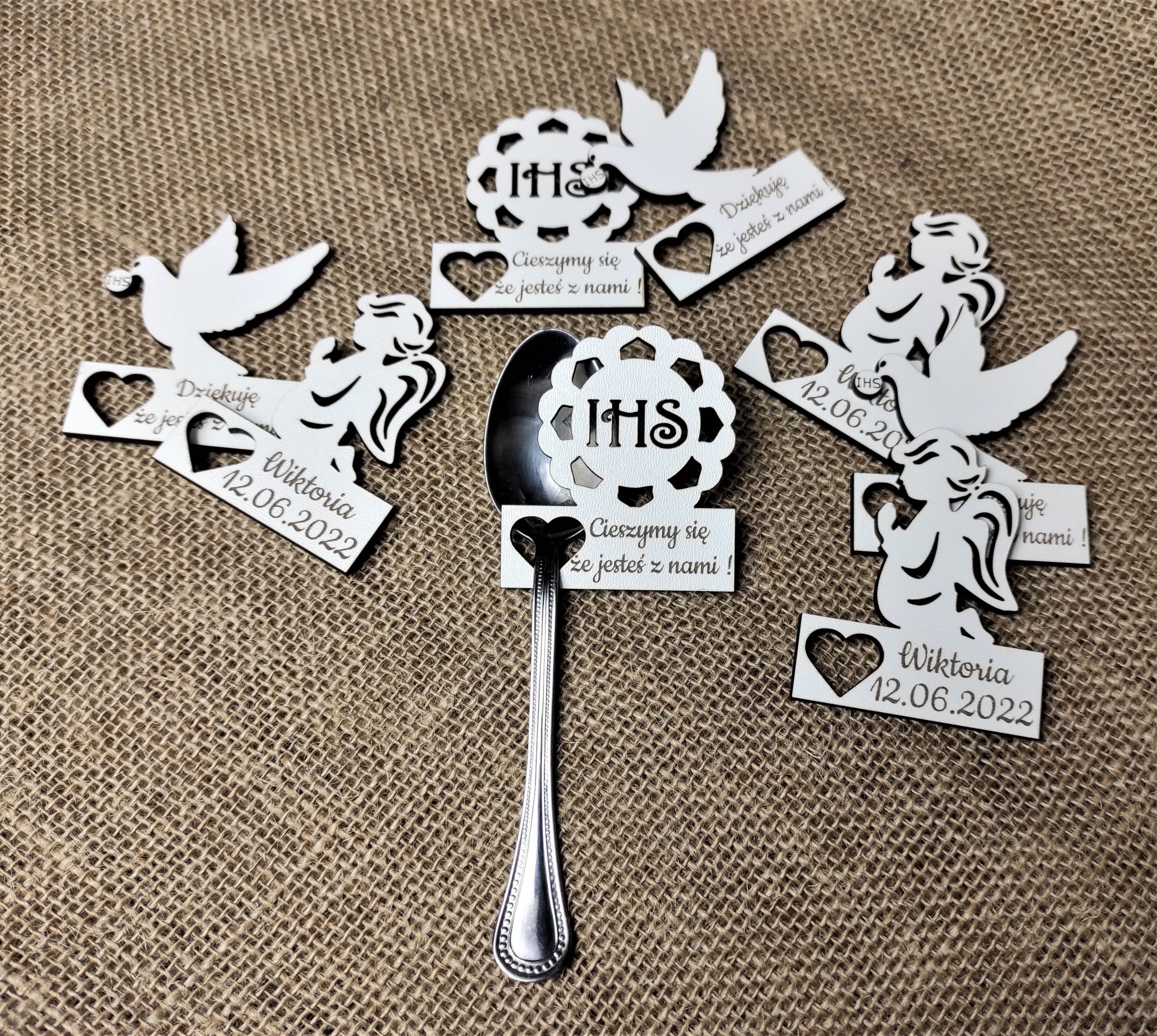 Dekoracyjne winietki komunijne na sztućce,